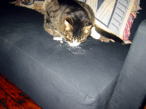 Schmitty eating the donut.
